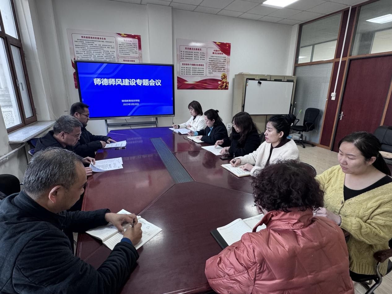 为进一步加强高校师德师风建设,落实教育部相关要求,按照学校师德师风建设总体部署,继续教育培训学院于2025年3月20日召开师德师风建设专题会议,传达教育部办公厅关于进一步压实高校师德师风建设主体责任的通知精神。