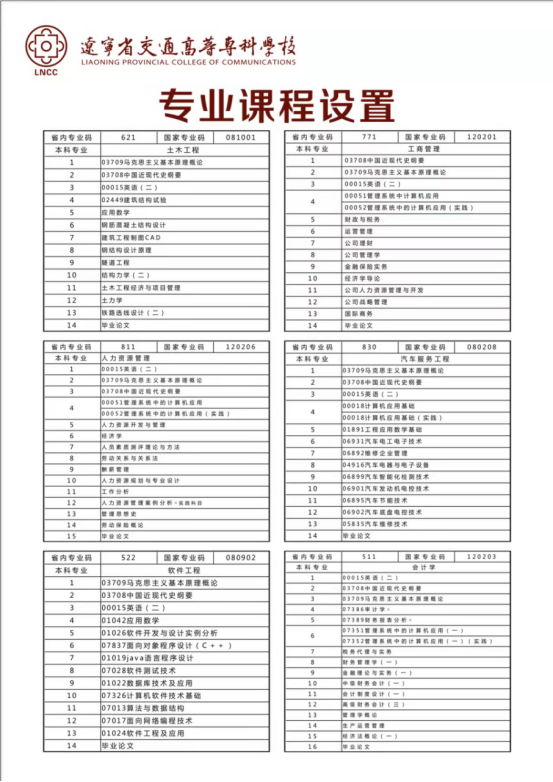自学考试专业课程设置