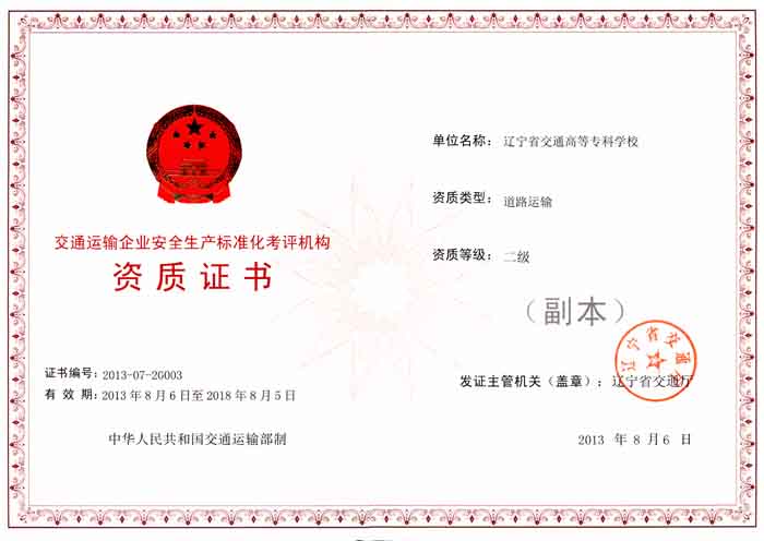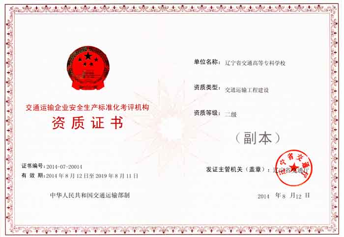 省交通厅日前发出通知,根据《交通运输企业安全生产标准化考评管理办法》和《交通运输企业安全生产标准化考评机构管理实施办法》,单位申报、条件初审、审核委员会审查、省厅安委办审核、厅领导批准等程序,认定包括我校为交通运输企业安全生产标准化二级考评机构,资质类型为交通运输工程建设。 去年8月,我校获得了辽宁省交通运输企业安全生产标准化考评机构二级资质,资质类型为道路运输,该资质由继续教育培训学院归口管理,负责机构的筹建和日常运行工作。截止至2013年12月底,我校已经对沈阳安运旅游汽车有限公司、沈阳市安捷客运有限公司等61家道路运输企业进行了“企业安全生产标准化”考评服务工作,受到主管单位和受评企业的好评。2014年6月,按照学校精神,继续教育培训学院经过精心准备和积极争取,向交通厅提交了“交通运输企业安全生产标准化二级考评资质(交通运输工程建设)”的申请材料,并获得通过,扩大了我校对“企业安全生产标准化”考评业务的范围,有力提升了学校的社会服务能力和社会影响力,拓宽了学校对外合作的空间和市场。