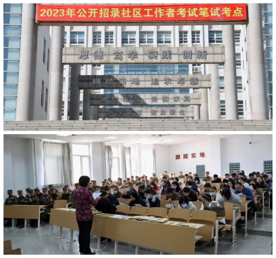 2023年4月22日,沈阳市社区工作者招录考试在我校进行。本次招录考试为期一天,是由沈阳市民政局主办,沈阳闯行睿聘科技有限公司承办,我校继续教育培训学院负责提供考试场地、配备监考教师、组织考务管理等工作。考试当天在我校共设98个标准考场,120名监考老师、士官学院道桥专业、计算机专业共计120名士官学生协助参加考试的相关工作。