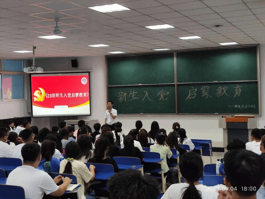 为加强23级新生对中国共产党的认识,提高思想觉悟,端正入党动机,激发新生们的入党积极性。2023年9月4日晚上18点至20点,轨道交通工程系专职组织员孔繁军老师为2023级全体新生分两次做入党启蒙教育。