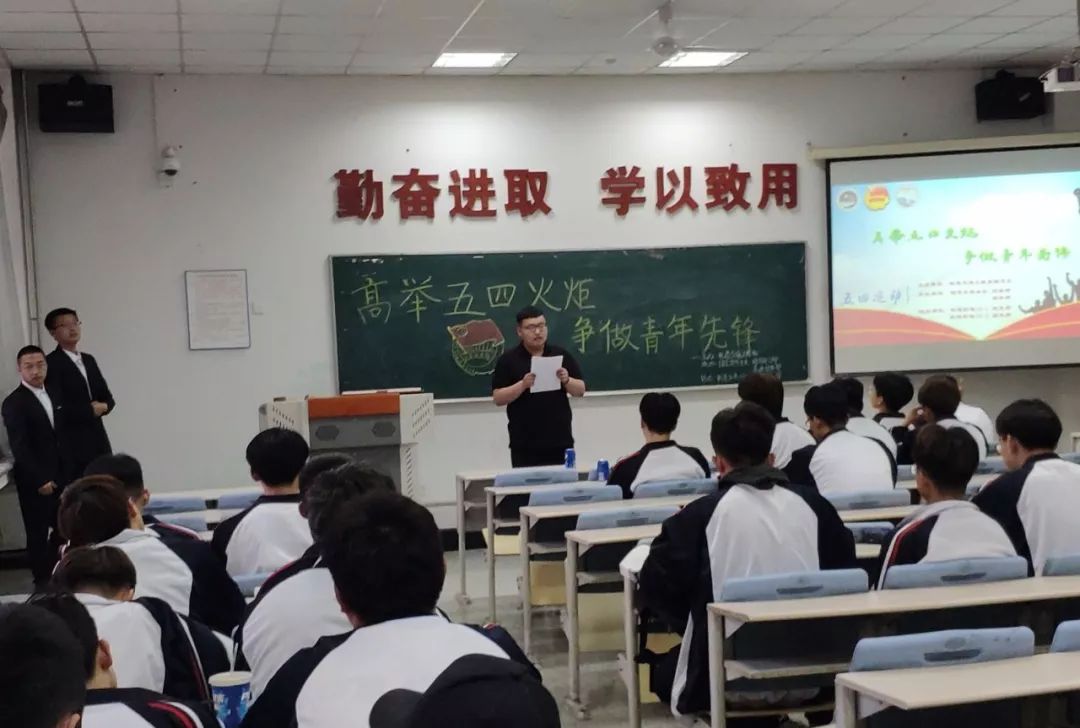 机电专业团支书首先介绍了五四运动的基本概况,详细地为大家梳理了五四运动的起因、经过以及五四青年节被正式确立的波澜壮阔的奋斗历史。同学们合唱团歌,进行五四精神演讲。最后,团支书进行了进一步的总结和升华,号召大家在新时代继承和弘扬五四精神,争做担当民族复兴大任的时代新人。