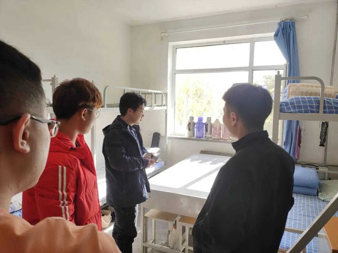 为进一步了解学生宿舍问题和加强对学生宿舍安全意识。2020年10月28日中午12点30分,轨道交通工程系党总支副书记李爽、机电专业辅导员杨丽、运营与信号专业辅导员杨皓月、车辆专业辅导员孙龙,分别对我系各专业学生宿舍进行了检查。