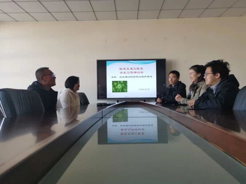 2020年11月7日上午9:30分,轨道系学生工作办公室在A座712室召开了学生工作研讨会,主题是:“疫情期间请假流程和要求”。参与本次研讨会的有党总支书记王会江,党总支副书记李爽、机电专业辅导员杨丽、运营与信号专业辅导员杨皓月、车辆专业辅导员孙龙参加。本次会议由党总支副书记李爽主持。