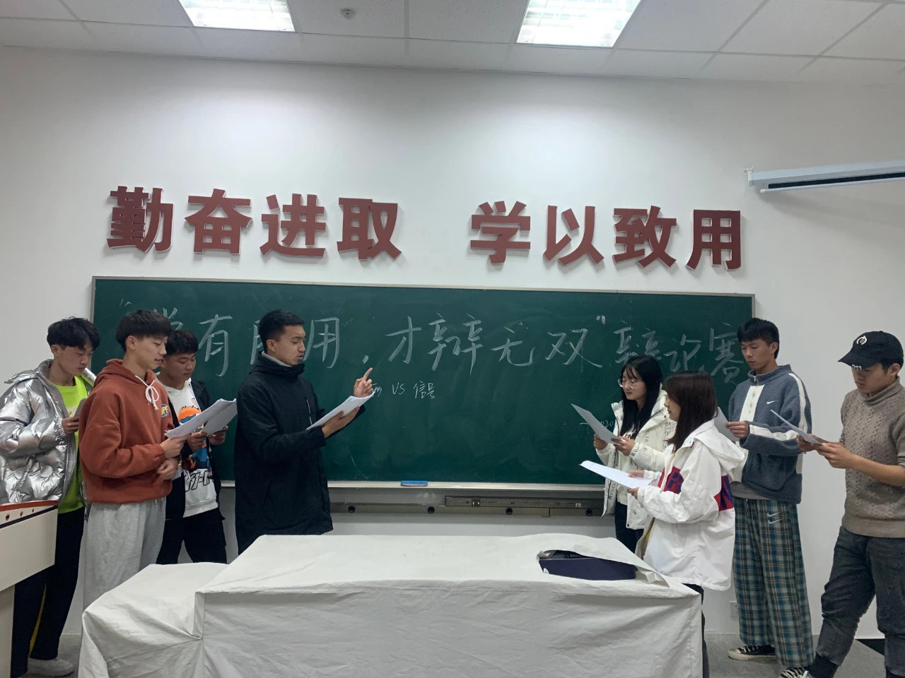 为了丰富我系学生的校园文化生活,激励我系学生勇于表现自我,发展自我,提升自我。我系于2020年11月13日6点在c406举办“学有所用,才辩无双”辩论赛,我系同学踊跃参加,此次活动不但丰富了同学们的思维能力,也锻炼了同学们的表达能力。辩论不只是口才,不只是表达,更多的是思想的碰撞与交流。