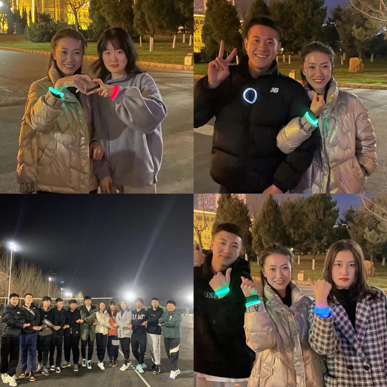 荧光点缀着夜晚的辽宁交专,活动设置的游戏地点处也充满笑声。虽然大家在奔跑的过程中有些劳累,但是当在指定地点做游戏时又会竭尽全力,看起来真的很棒!夜跑的过程中,很多女生即使很疲惫但是仍然坚持奔跑,充分看出同学们的毅力坚定。