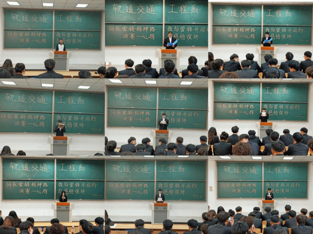 为营造学雷锋精神氛围,进一步提高同学们的文化素养、志愿情怀和阳光开朗积极向上的精神面貌,丰富校园文化。轨道交通工程系于2023年3月30日16点30分,在C阶一教室举办“同在雷锋精神路,我与雷锋并肩行决赛-心得与感悟演讲”主题演讲活动。