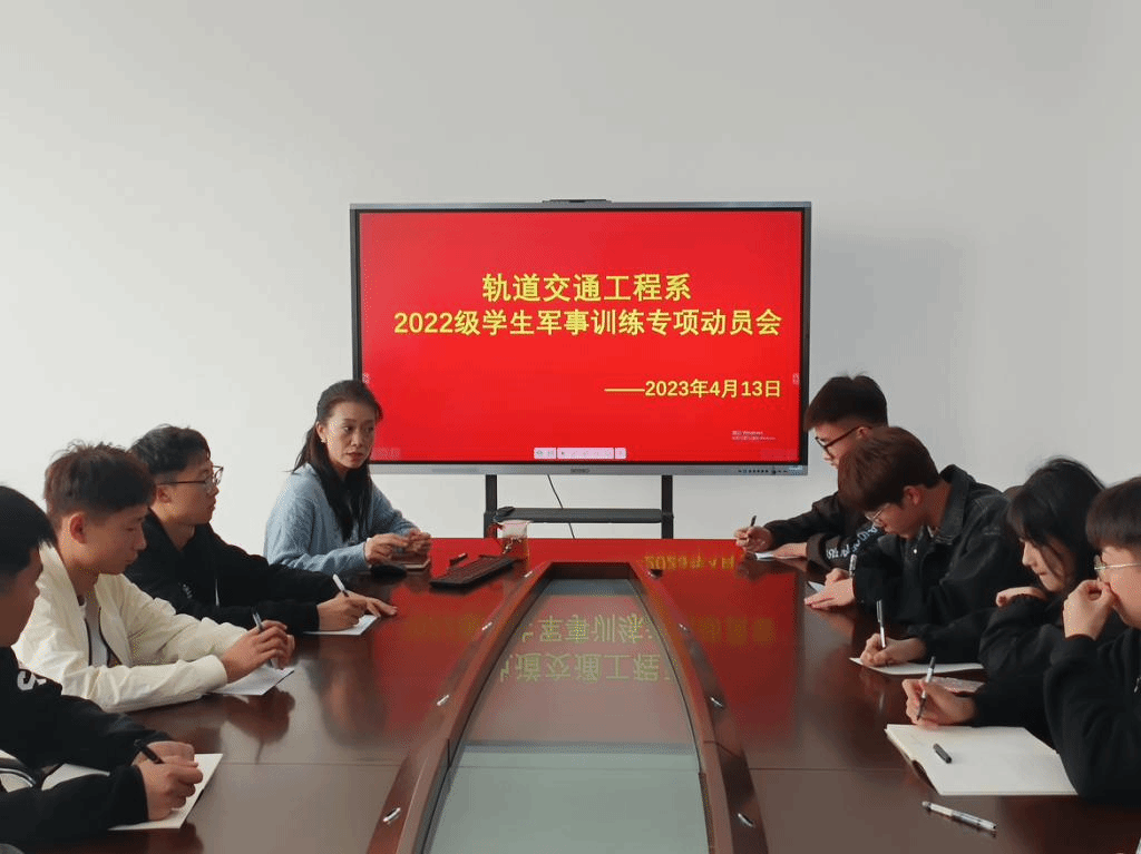 青春心向党,共筑强军梦。为进一步提高学生思想政治觉悟,激发爱国热情,增强国防观念、国家安全意识、组织纪律观念,4月13日中午12时30分,轨道交通工程系在A712会议室召开2022级学生军事训练动员会,各专业学生代表参与本次会议,会议由军训专项负责教师杨丽主持。