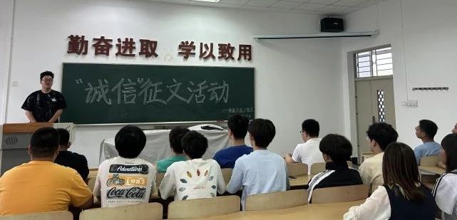 诚信是中华民族的传统美德,是社会主义核心价值观的重要组成部分,是大学生立身为人的成长成才的必备品质。为深入培育践行社会主义核心价值观,大力弘扬诚实守信的中华传统美德,发挥诚信精神在新时代的教育引导作用,增强学生的诚信意识,培养学生的诚信品质,2023年6月15日下午17:00在c406,我系开展“践行诚信,筑梦起航”主题征文比赛。