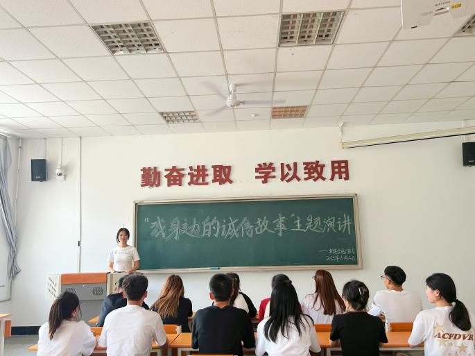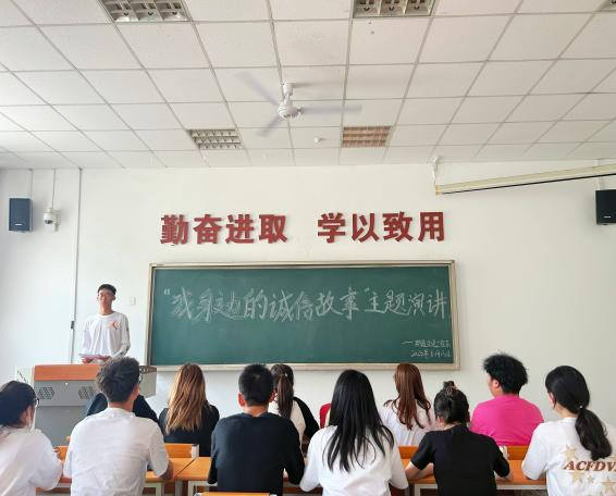 为使学生懂得诚信不仅是做人的准则、立业的根基,更是一种社会评价度,树立“诚信第一、品格第一”理念,养成诚信的良好习惯,增强新时代大学生的诚信意识和责任担当,确保同学们充分认识诚信教育的重要性和必要性,2023年6月13日下午15:30在c101,我系举办“我身边的诚信故事”主题演讲比赛活动。