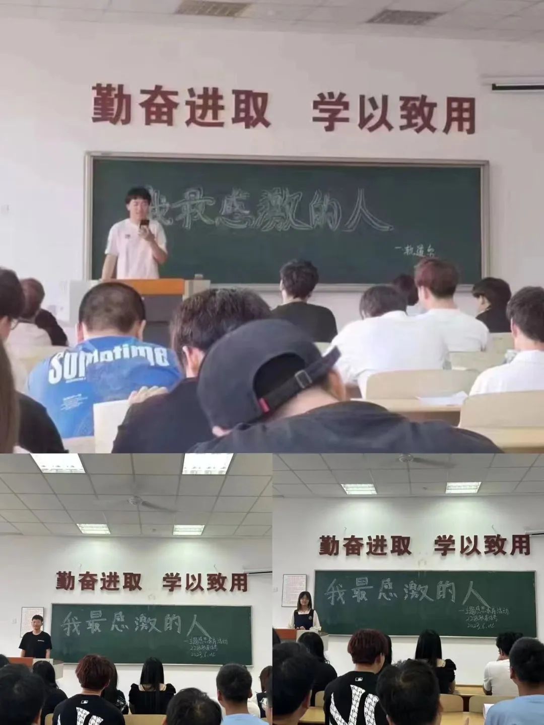 为了让同学们深刻领会父母的爱,引导同学们热爱、尊敬师长,让每位同学都拥有一颗感恩的心,学会如何去理解、体谅、关心父母,与父母和谐相处,以实际的行动来回报父母;更为了让同学们懂得人生价值、生命意义,关爱自己、珍惜生命,做一个知感恩懂感恩的热血青年。2023年6月14日下午18:00在c406我系举办“我最感激的人”主题感恩教育活动。