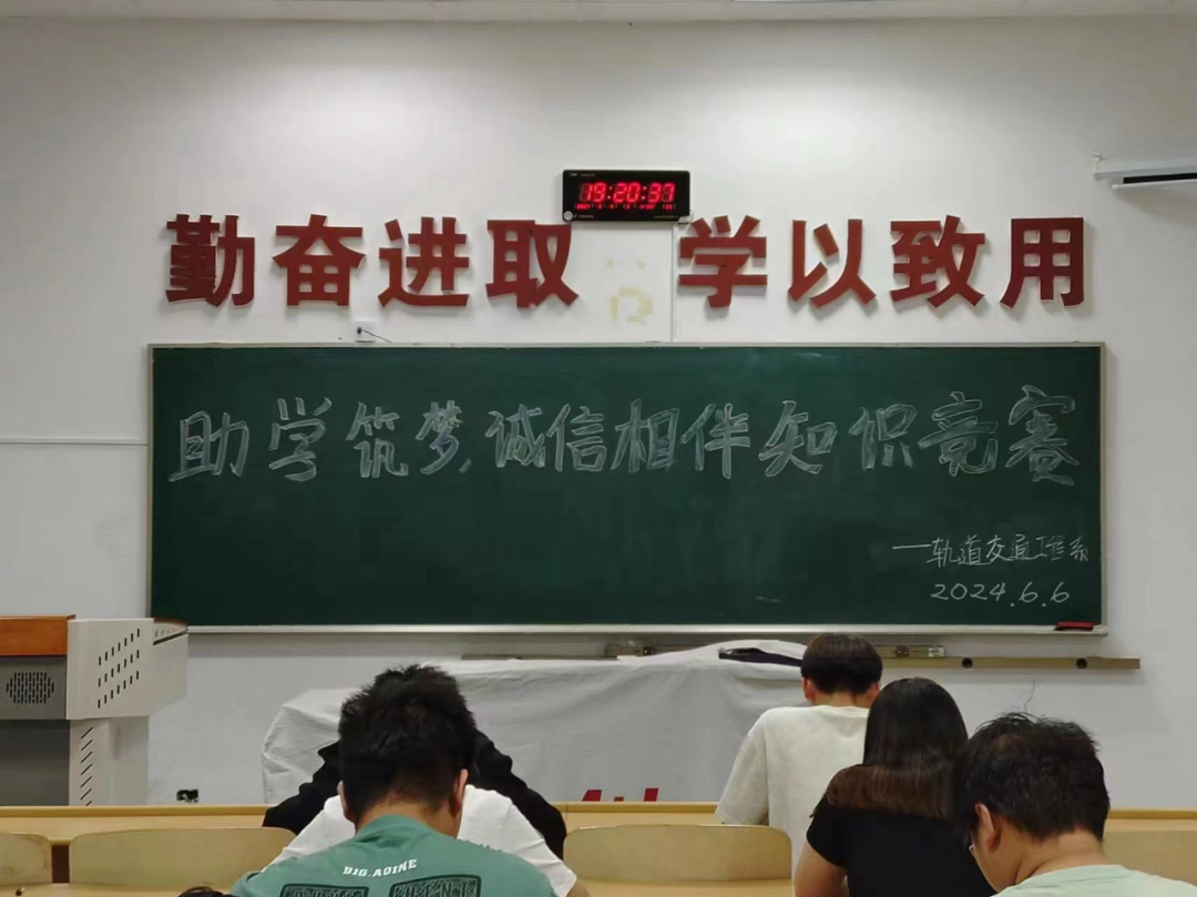 6月6日,轨道交通工程系在c座举办“助学筑梦,诚信相伴——诚信知识竞赛”。此次竞赛以诚信为主题,题目涵盖资助政策、法律法规、道德规范等方面。通过笔试竞赛的方式,检验学生对诚信知识的掌握程度,提高学生对诚信问题的关注。