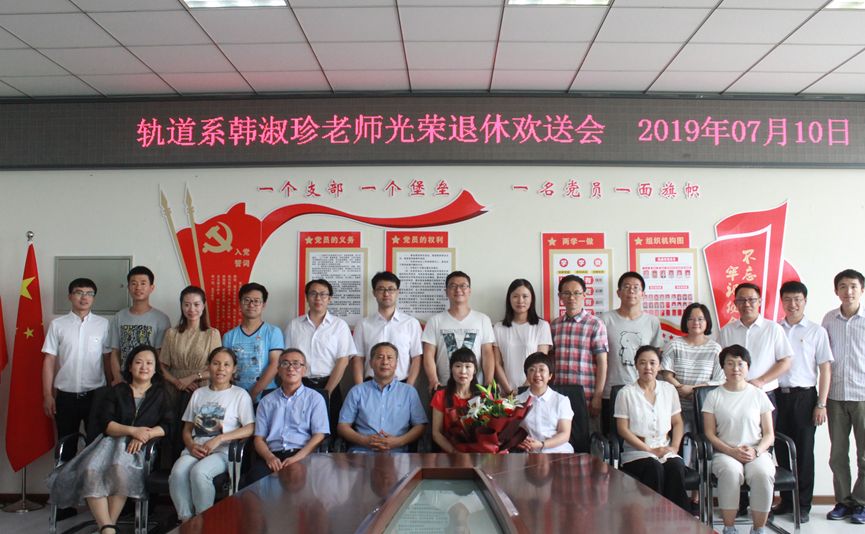 2019年7月10日下午,轨道系在A712会议室举行韩淑珍老师光荣退休欢送活动,欢送仪式由轨道系分会主席李爽主持,全系教职工和特邀嘉宾原轨道系主任张洪革同志参加了欢送活动。