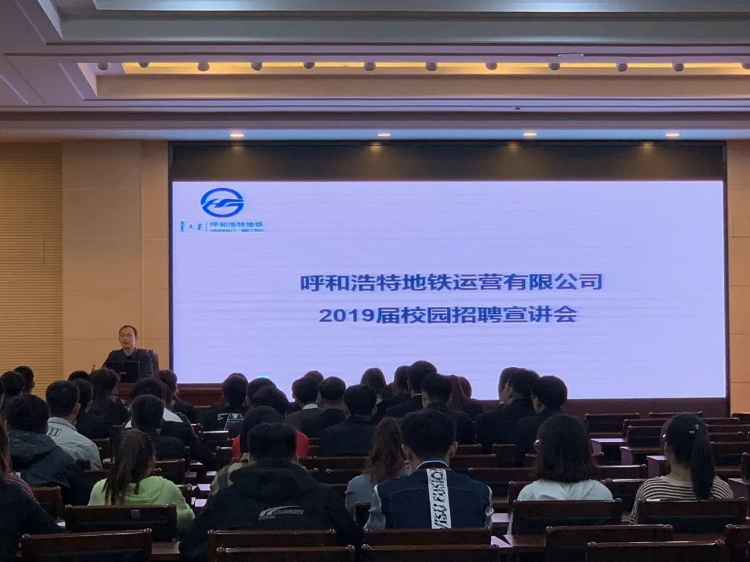 2019年9月19日,在我校学生综合素质中心101对我系进行了呼和浩特地铁运营有限公司2019届校园招聘宣讲会,参与活动的有我系党总支书记王会江,党总支副书记李爽,运营专业辅导员杨皓月老师,以及呼和浩特地铁运营有限公司的各位领导。