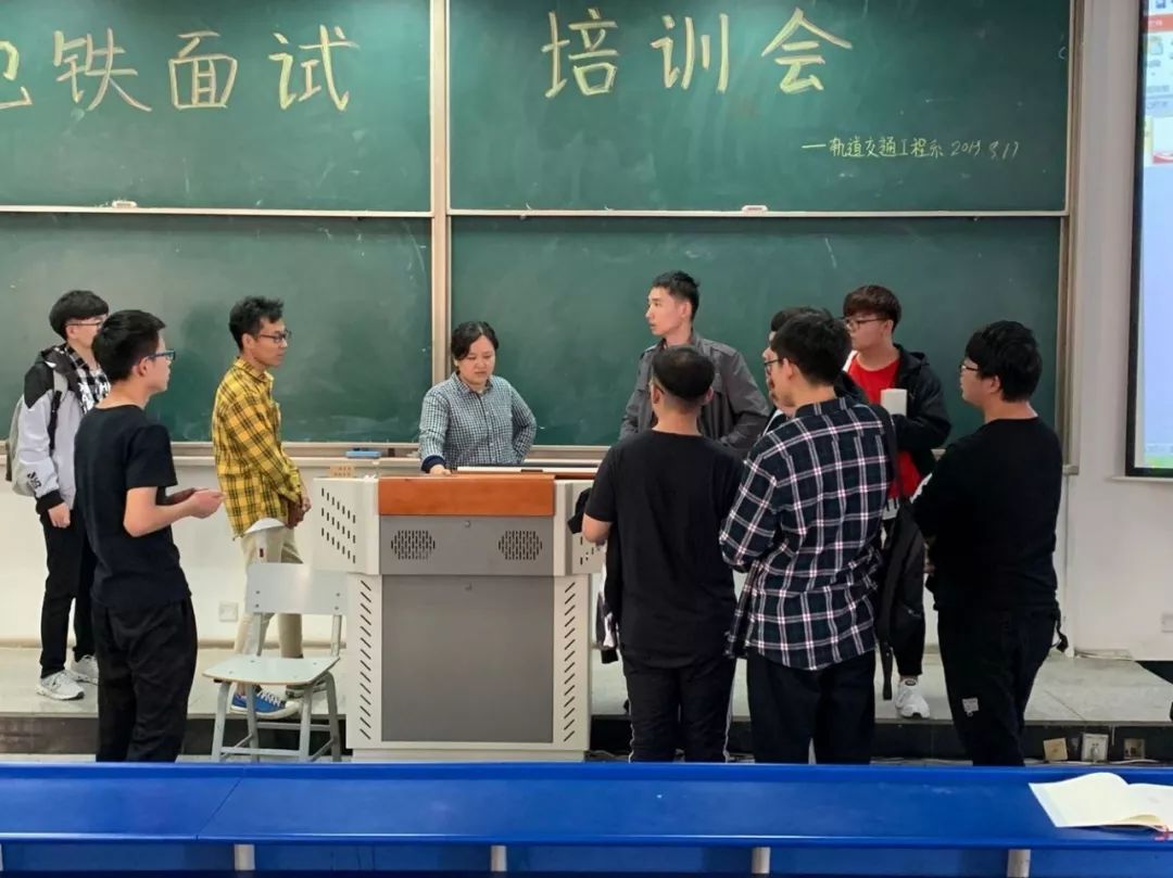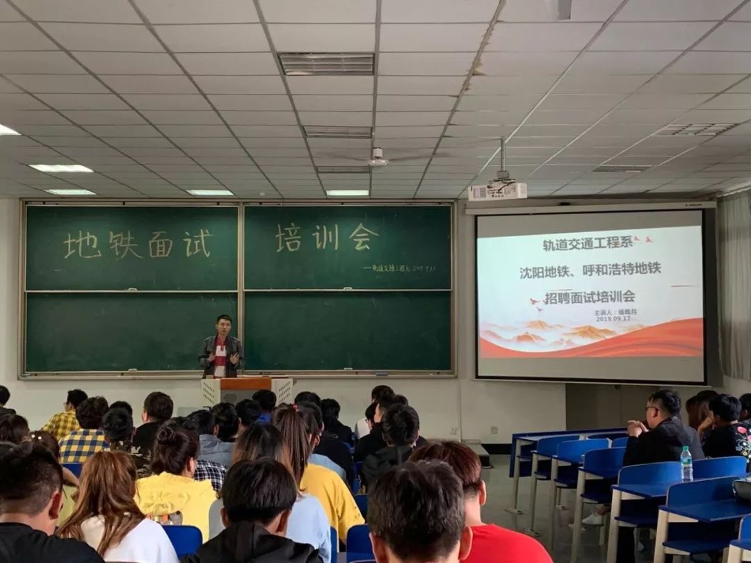 培训会议伊始由我系党总支副书记李爽主持召开培训会,详细的介绍了沈阳地铁和呼和浩特地铁两个面试单位,后由我系运营专业辅导员杨皓月老师进行培训,首先杨皓月老师提问了大三学生几个专业性的问题,其次对明天面试发言的内容提出了一些建议,最后提醒同学们明天仪容仪表整洁度,面试时的服装要求,头发的整洁。
