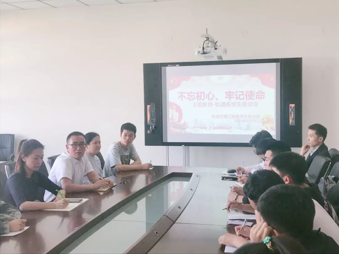 2019年9月26日我系在A712会议室举行“不忘初心,牢记使命”轨道系学生座谈会,此次座谈会由我系学生党支部书记孔繁军老师进行主持,出席本次会议的有党总支书记王会江,党总支副书记李爽,团总支书记杨丽,专业辅导员孙龙,杨皓月及各年级代表。座谈会中孔繁军老师对党的要求及党的号召进行传达,后由各位老师组织学生对校学风建设,宿舍管理等方面提出建议。呼吁我们与学校一同进步。