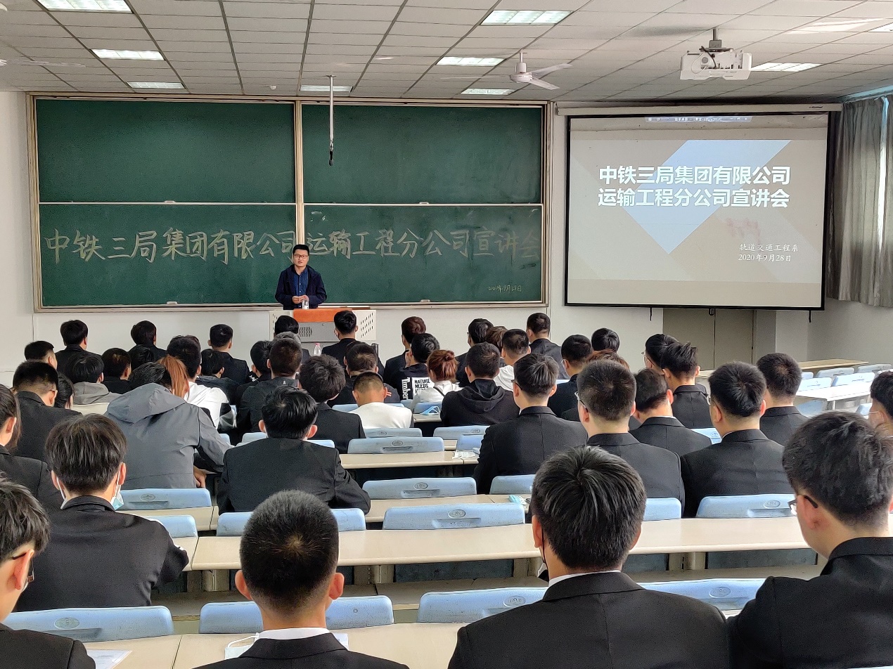 本次招聘主要面向我系四个专业2021届毕业生,共有47名学生在我校明德楼第二阶梯教室参加了招聘面试。招聘过程井然有序,参加面试的同学准备充分,应聘表现出色,最终34名学生通过面试被中铁三局运输工程分公司录用。