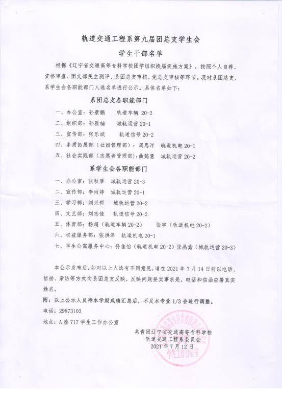 本公示发布后,如对以上人选有不同意见,请在2021年7月14日前以电话、信函、亲访等方式向系团总支反映,反映问题要实事求是,电话和信函应署真实姓名。