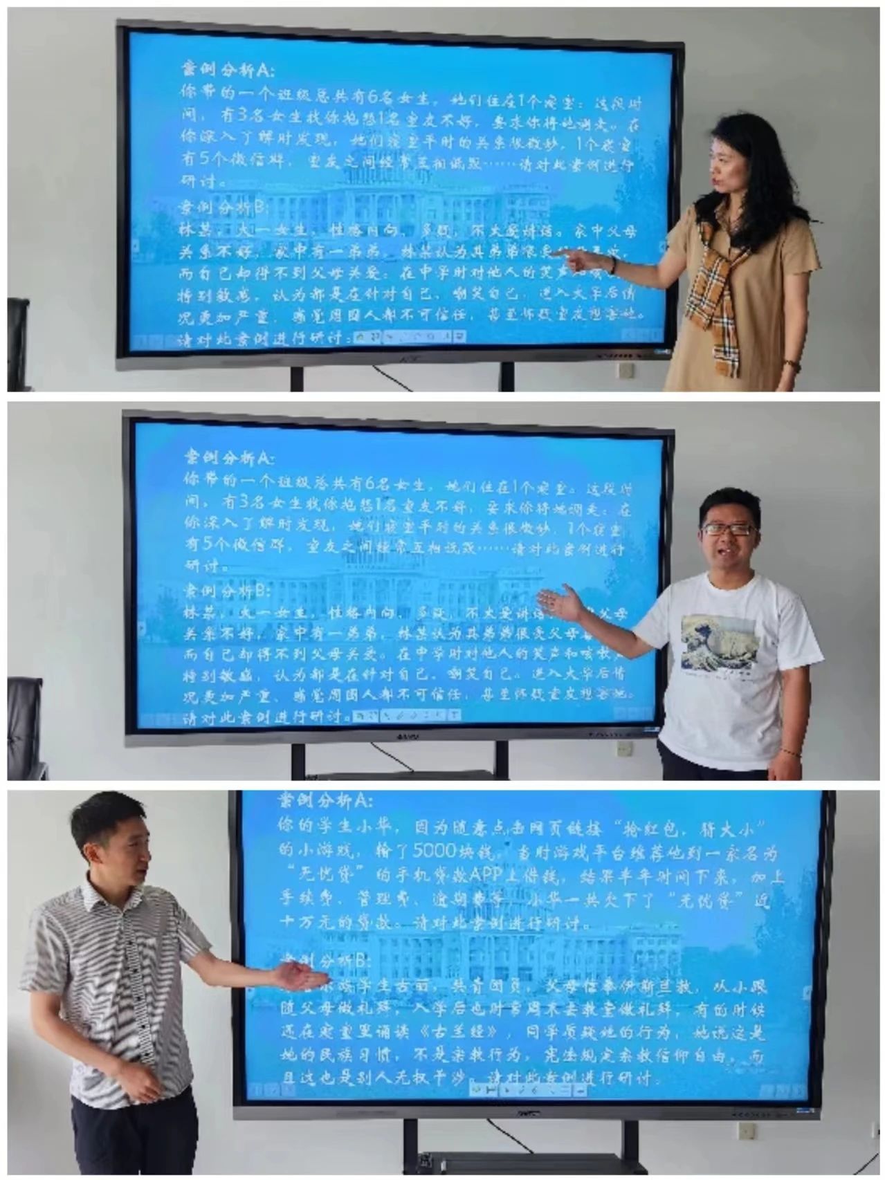 本次比赛参照辽宁省第十届辅导员素质能力大赛的赛制要求,案例分析环节分为AB角色,进行问答。谈心谈话环节由老师扮演学生角色,与参赛选手开展谈话,模拟日常情景,解决学生常见问题。比赛内容接地气,回归工作本质,不忘育人初心。在比赛中,孙龙老师思路清晰,应对自如,表现出色,展示出扎实的专业知识与技能和高超的应变能力与沟通能力,综合成绩排名第一。