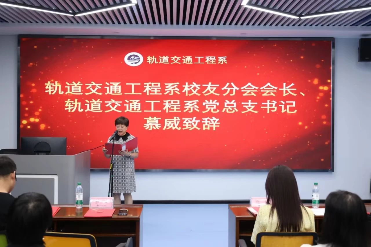 轨道交通工程系校友分会会长、轨道交通工程系党总支慕威书记致辞。首先对情系母校、关心支持轨道交通工程系建设与发展的校友们表示衷心的感谢!为社会培养轨道交通行业人才是轨道系的光荣和使命所在。让校友驻足相聚和交流,在这里追抚峥嵘岁月,展望美好明天。希望各位校友能够对学校的学科建设、教学改革、就业创业、管理服务等各方面的工作提出宝贵的意见和建议,助力母校发展。与母校携手共进,共创未来!