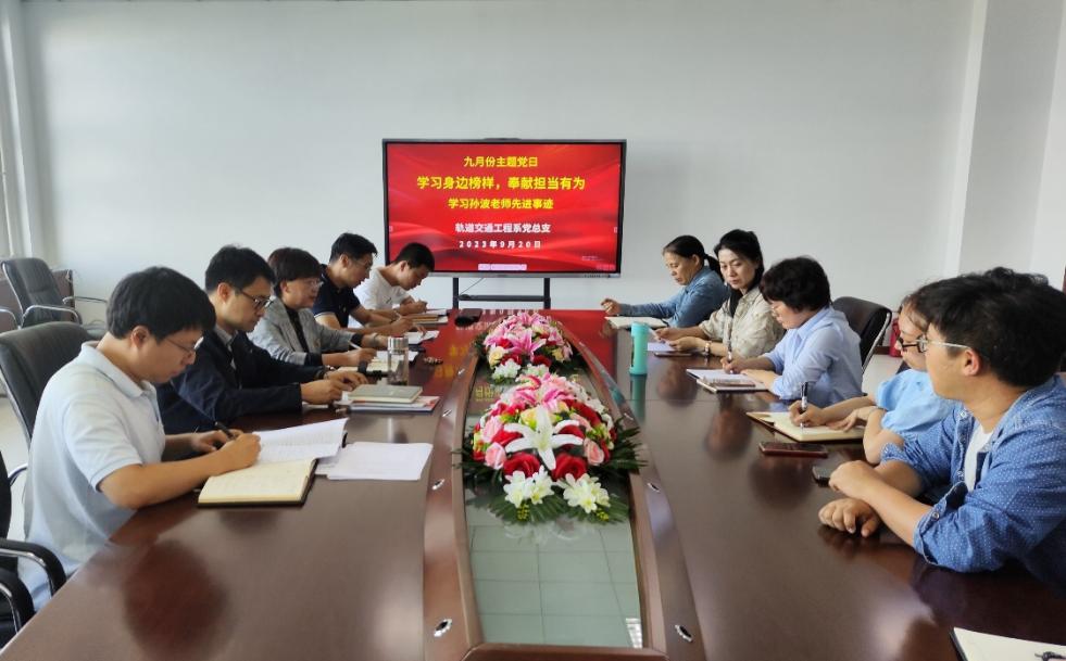 为贯彻落实《m体育(中国)有限公司官网学习贯彻习近平新时代中国特色社会主义思想主题教育实施方案》要求,激发教师团结、奋进、进取的职业精神,夯实教师立德树人育人目标,2023年9月20日下午13:30分,轨道交通工程系党总支在A712会议室开展九月份主题党日活动-“学习身边榜样,奉献担当有为”。本次活动由党总支书记慕威主持,全国巾帼建功标兵、辽宁省优秀教师孙波老师进行经验分享,轨道交通工程系全体教工党员参加。