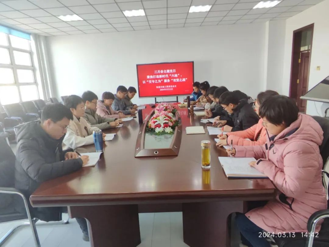 轨道交通工程系党总支于2024年3月13日开展主题为聚焦打造新时代“六地”,以“交专之为”服务“攻坚之战”的三月份主题党日活动。会议由党总支书记慕威主持,轨道交通工程系全体教工党员参加。