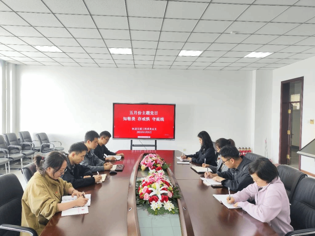 为扎实推进学校党纪学习教育,按照学校党纪学习工作方案要求,轨道交通工程系于2024年5月8日开展主题为“知敬畏 存戒惧 守底线”的五月份主题党日活动。
