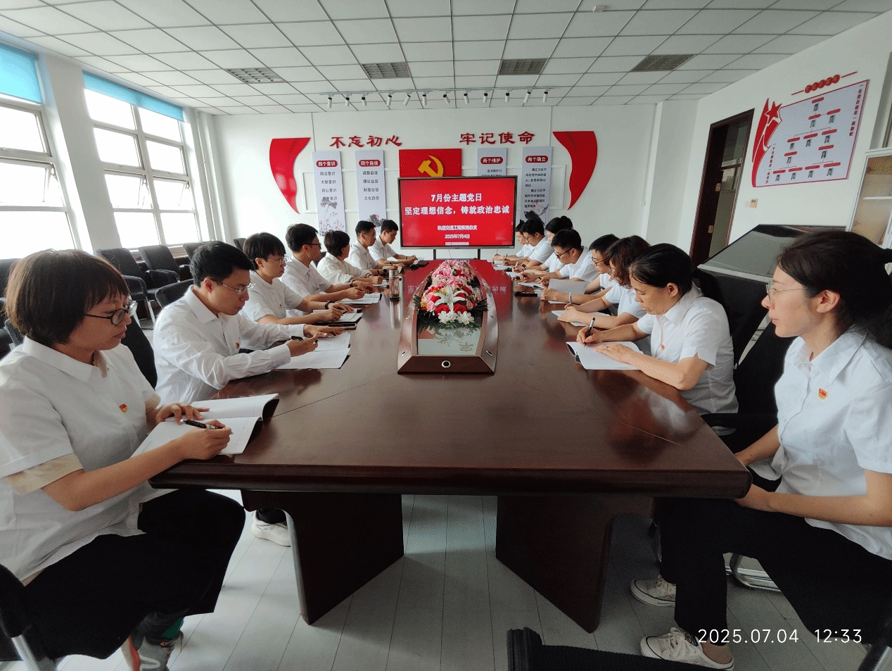 为庆祝中国共产党成立104周年,弘扬“六地”精神,赓续红色血脉,轨道交通工程系于2025年7月4日开展“坚定理想信念,铸就政治忠诚”为主题的七月份主题党日活动。