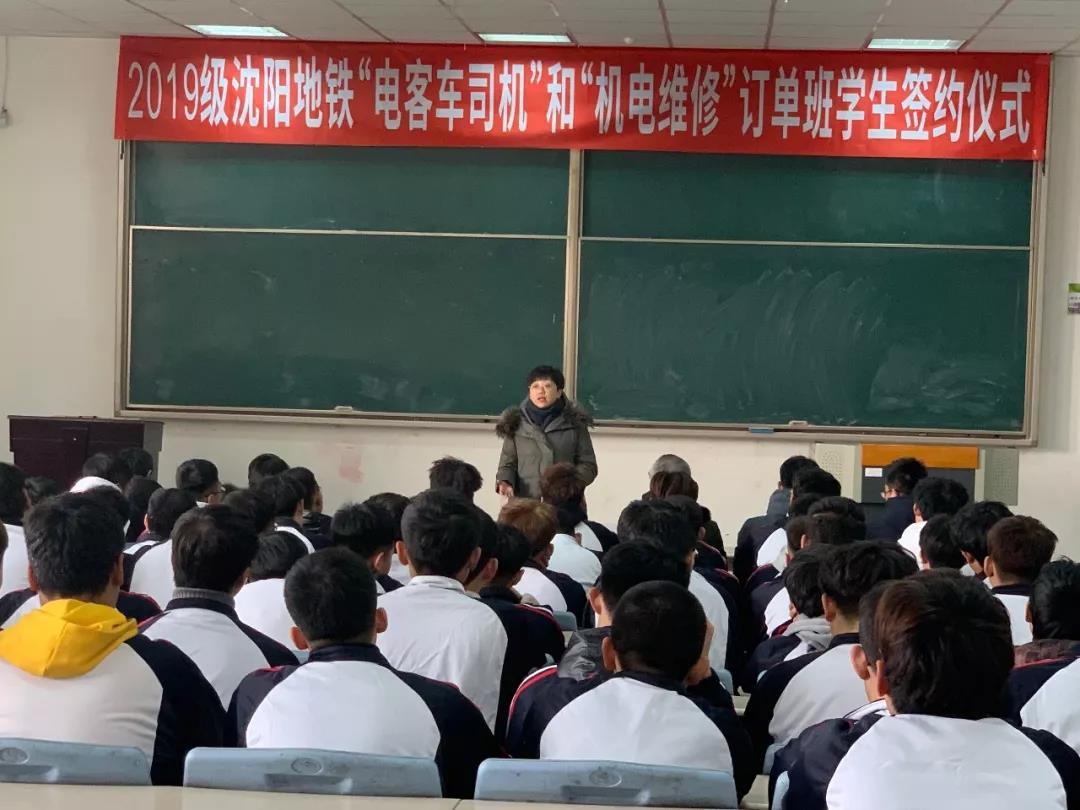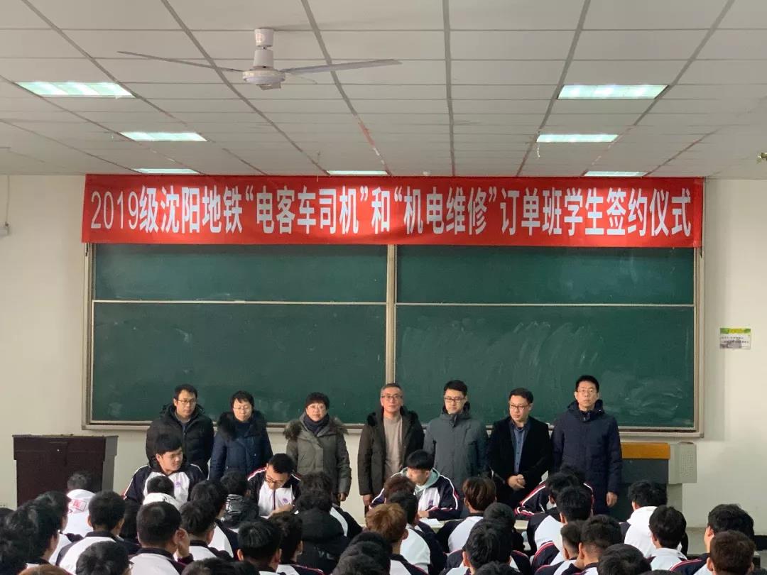 2019年12月26日,轨道交通工程系在我校B阶2举行2019级沈阳地铁“电客车司机”和“机电维修”订单班学生签约仪式,出席本次仪式的有轨道系主任慕威,轨道系党总支书记王会江,轨道系副主任薛亮、刘继光、机电专业及车辆专业专业主任、辅导员和班主任。