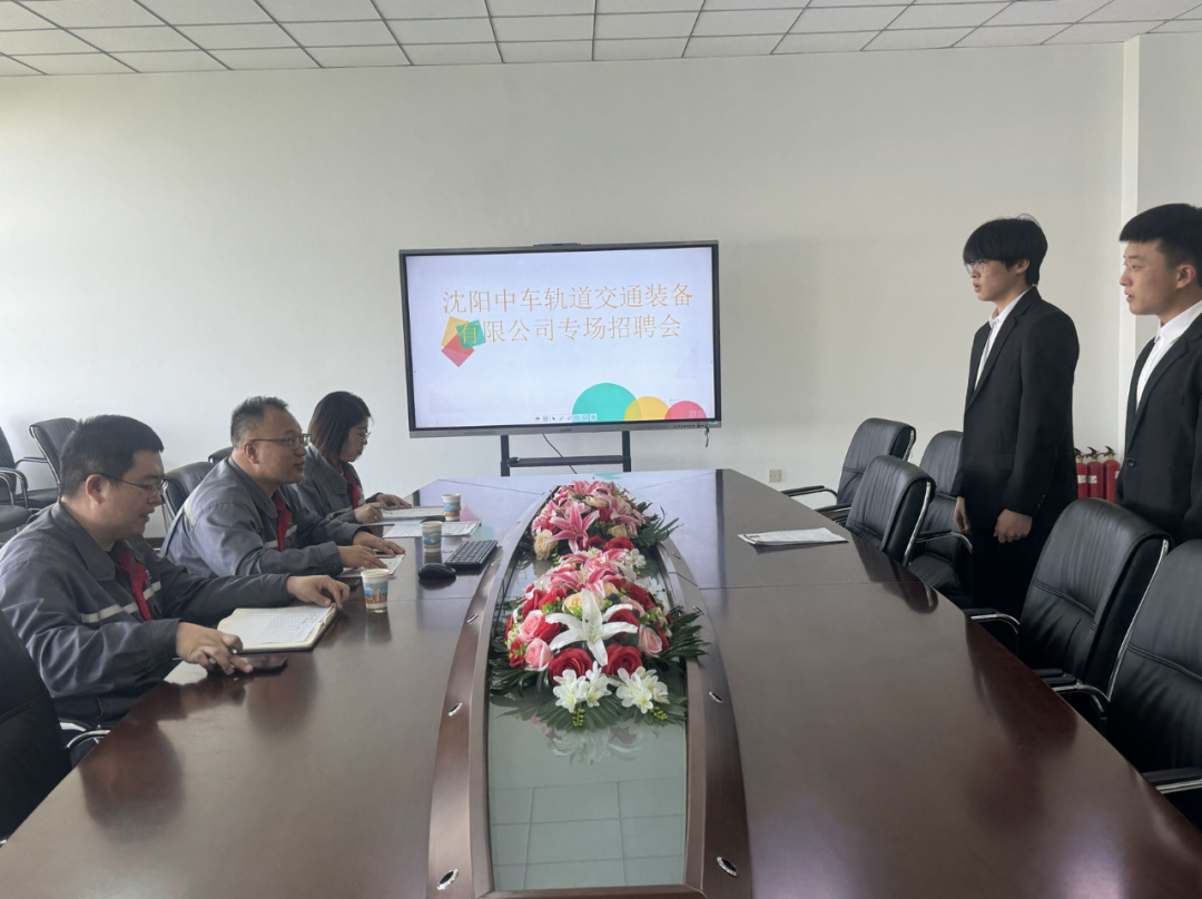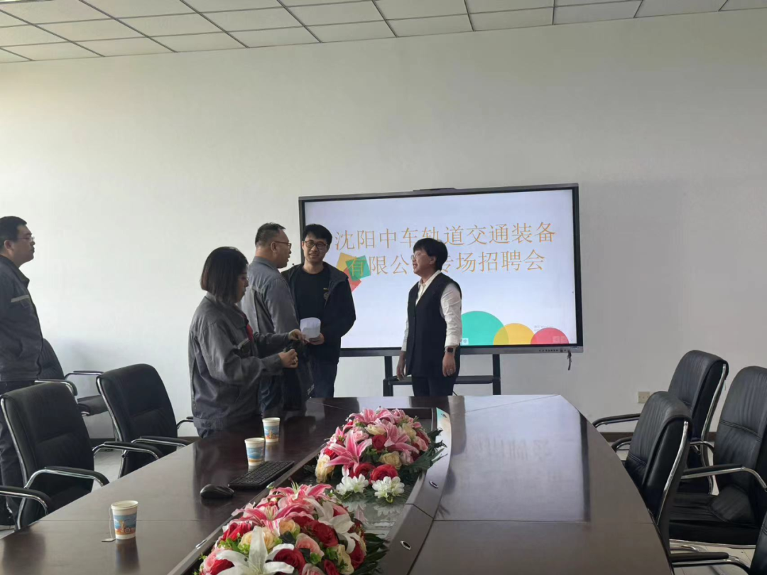 近日,沈阳中车轨道交通装备有限公司在轨道交通工程系712会议室举办专场招聘会,公司常博文部长一行三人参加招聘。