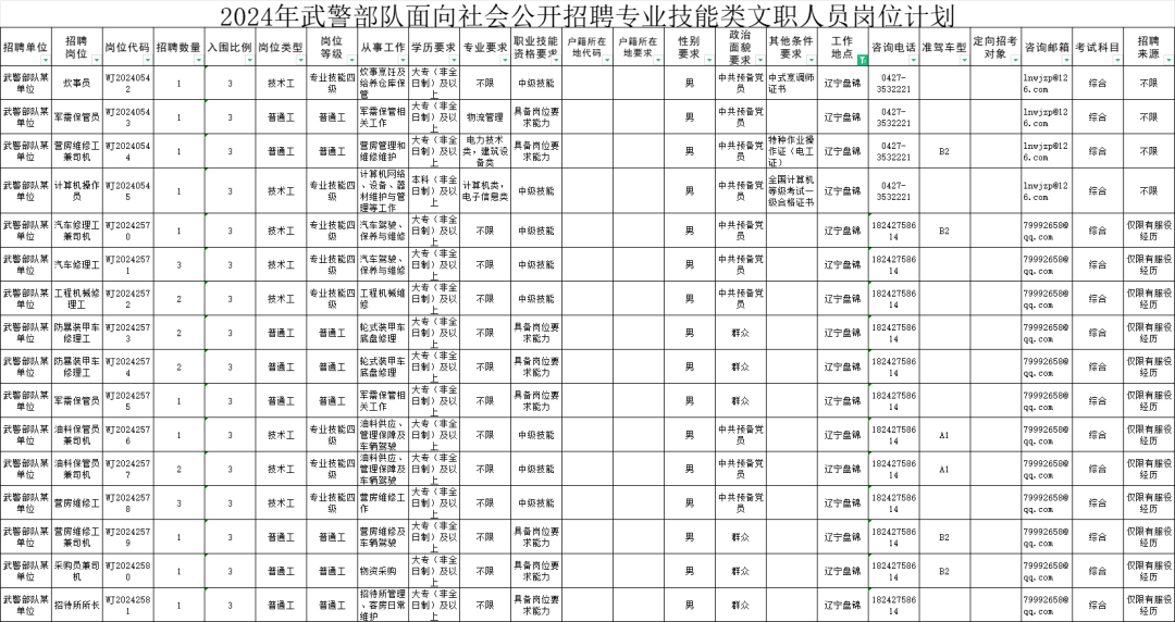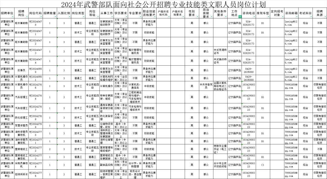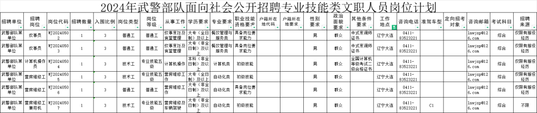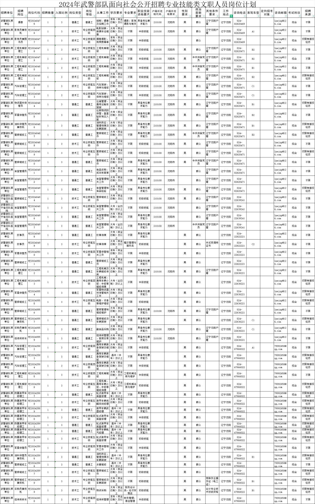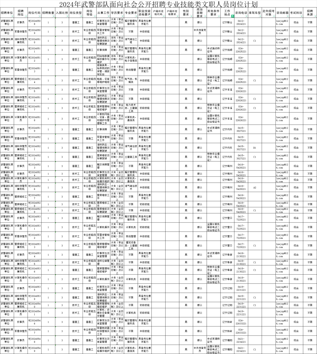 附件:2024年武警部队面向社会公开招聘专业技能类文职人员岗位计划