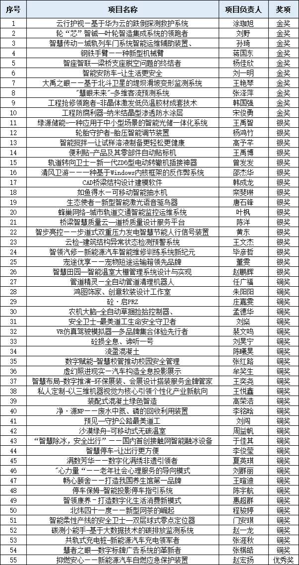 近日,“建行杯”辽宁省大学生创新大赛(2024)获奖名单公布,我校共有60个项目在本届大赛中获奖,其中“职教赛道”荣获金奖10项、银奖16项、铜奖28项、优秀奖1项;“青年红色筑梦之旅赛道”荣获银奖2项、铜奖3项;金奖数量及获奖总数量均位于全省高职院校首位。机械电子工程系魏国家等老师指导的《轮“芯”智铖--叶轮智造集成系统的领跑者》项目、质量监督指导评价中心李云峰等老师指导的《智座智联--梁桥支座脱空问题的终结者》项目、道路与桥梁工程系赵同峰等老师指导的《工程抢修领跑者-非晶体激发低负温胶材成套技术》项目进入国赛。