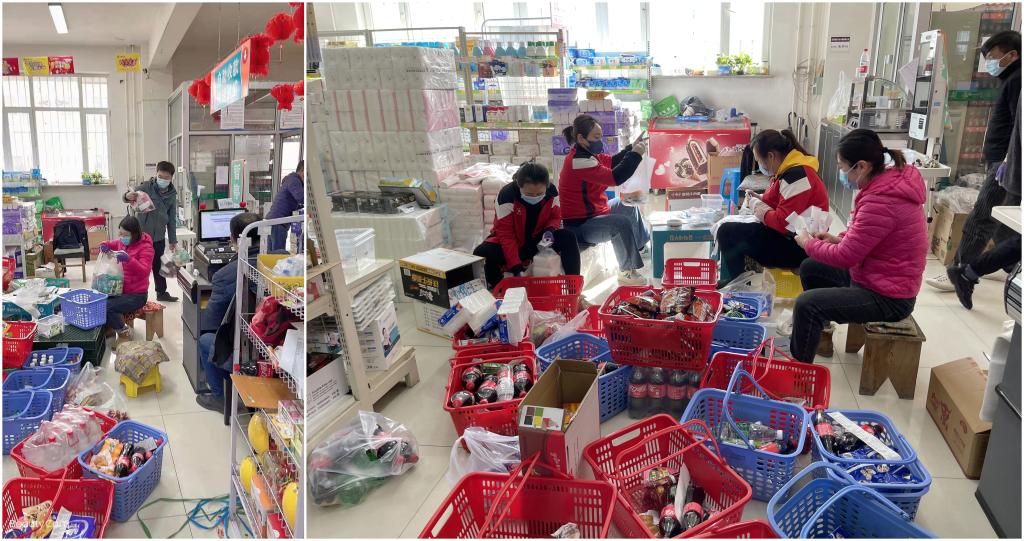 由于学生平时都在寝室学习生活,校园超市立即开通线上购物平台,并进入全天候在线服务模式。成立了外来货物闭环运输转运队和学生公寓送货志愿者服务队。不同的角色,同样的使命,他们既是试验检测的精英、培训中心的后厨此时又成为了运输队成员,更是送货志愿者。瀚威公司所有员工日月轮转,迅速有序地为全体在校师生配送商品货物。一碗泡面,一袋榨菜,经常在晚上9点,沈阳瀚威公司王俊杰经理才吃上晚饭,几口扒完泡面,她又要开始安排第二天网上订单派送的准备工作。