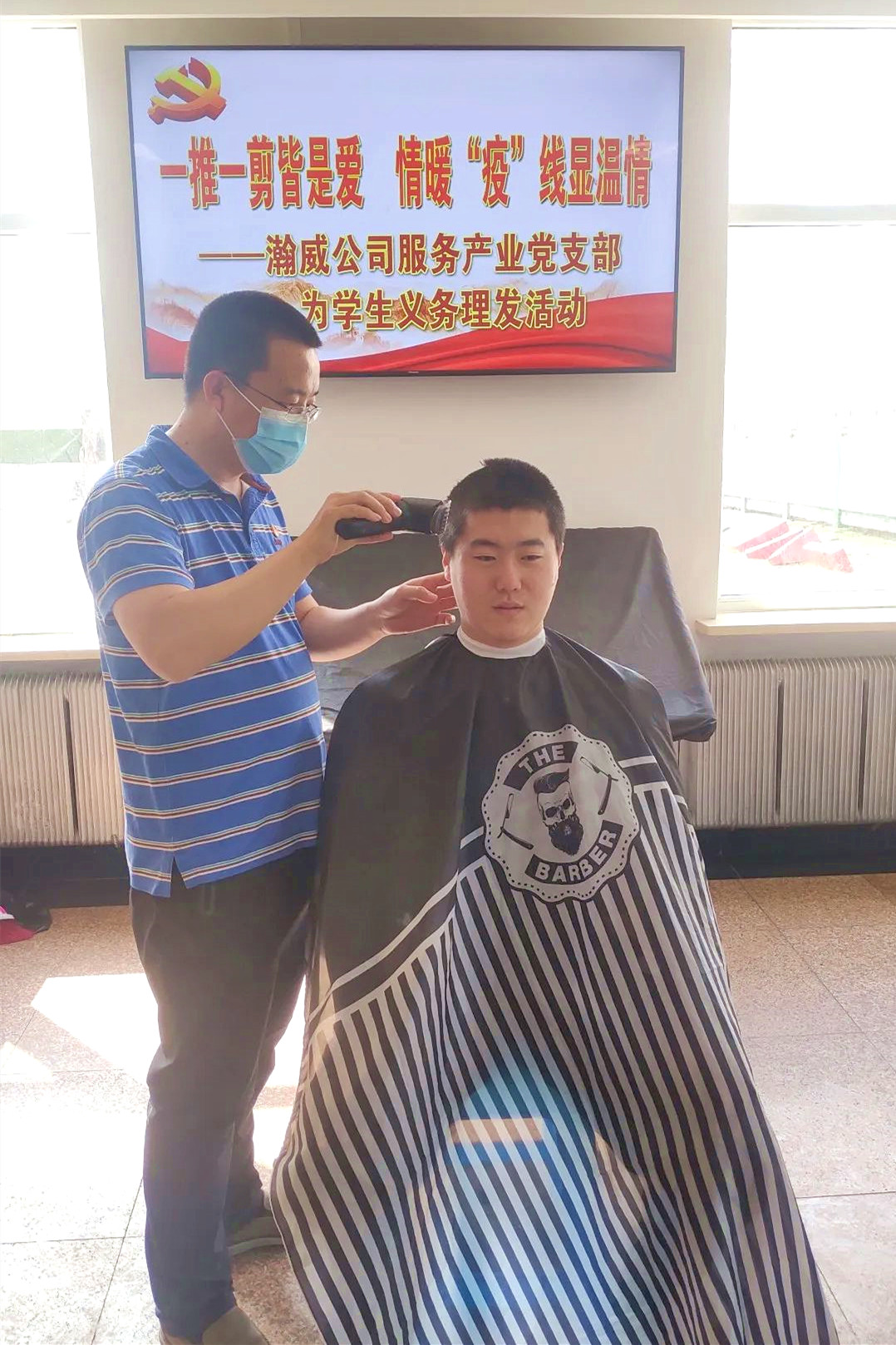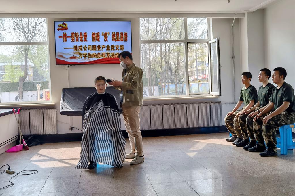 面对突如其来的疫情,校园采取“铁桶式”封闭管理,校园内仅有的一个理发馆面临很大的压力,8000多名在校生的理发问题成了一大难题。爱系于发、情系于剪。瀚威公司服务产业党支部秉承“服务师生”的宗旨开展党员志愿服务活动,于4月25日开始为在校士官生开展义务理发活动,为同学们解决“头”等大事。