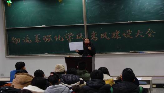 12月21日,物流系在B阶二召开了 “强化学风、考风建设大会”。