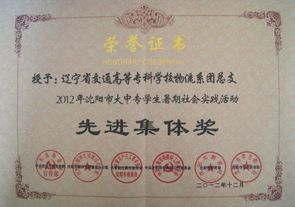 物流系荣获沈阳市大中专学生暑期社会实践活动先进集体奖