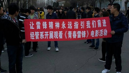 撰稿人:张宁 3月10日晚6时,我系大一全体学生在综合办公楼门前集合,前往富林影院观看电影《青春雷锋》。