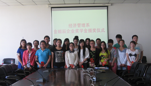 5月17日下午,经管系在教学实验楼716会议室举行了金顺辰企业奖学金颁奖仪式,沈阳金顺辰汽车销售服务有限公司于红艳经理、经管系领导、各专业主任及20名获奖学生和学生代表参加了会议。