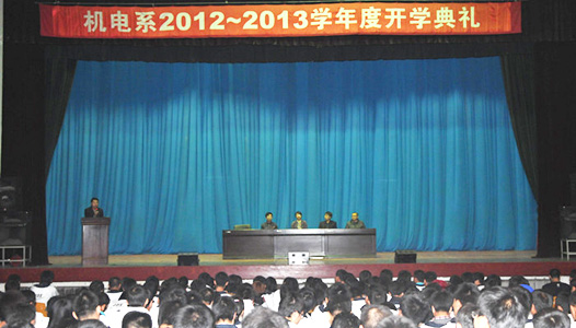 10月11日晚,机电系在校礼堂召开2012—2013学年度开学典礼,党总支书记李滨慧、主任赵波、学工办主任于林发、教学办主任许光君、实训中心主任赵捷以及各位专兼职辅导员、教师代表和机电系全体学生参加了此次典礼。