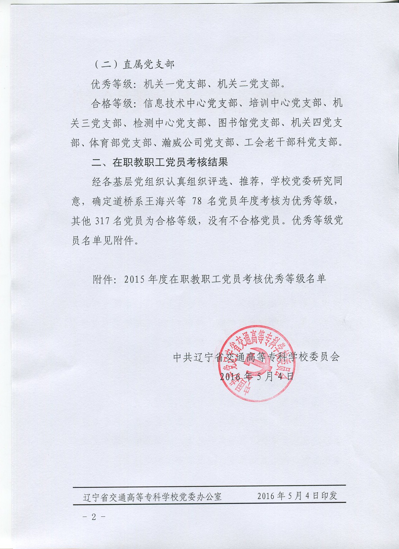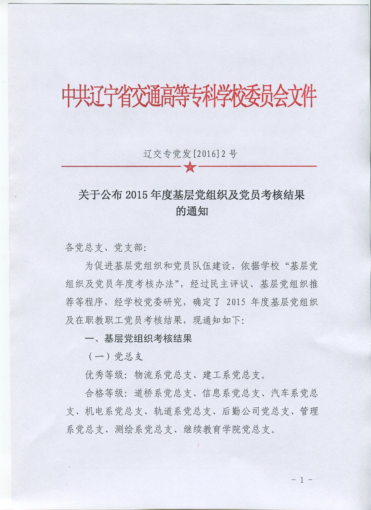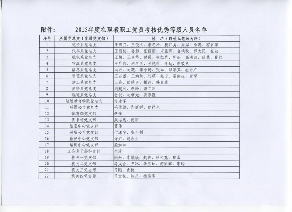 关于公布2015年度基层党组织及党员考核结果的通知