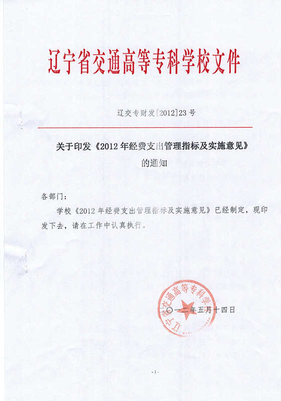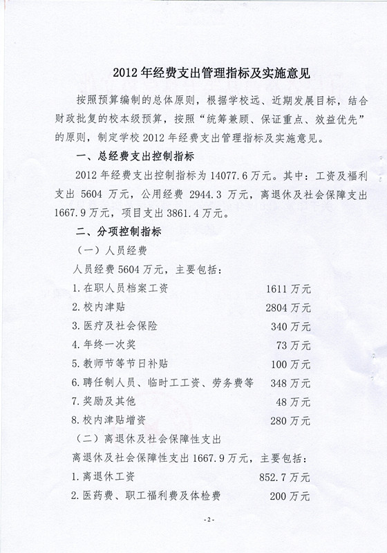 关于印发《2012年经费支出管理指标及实施意见》的通知
