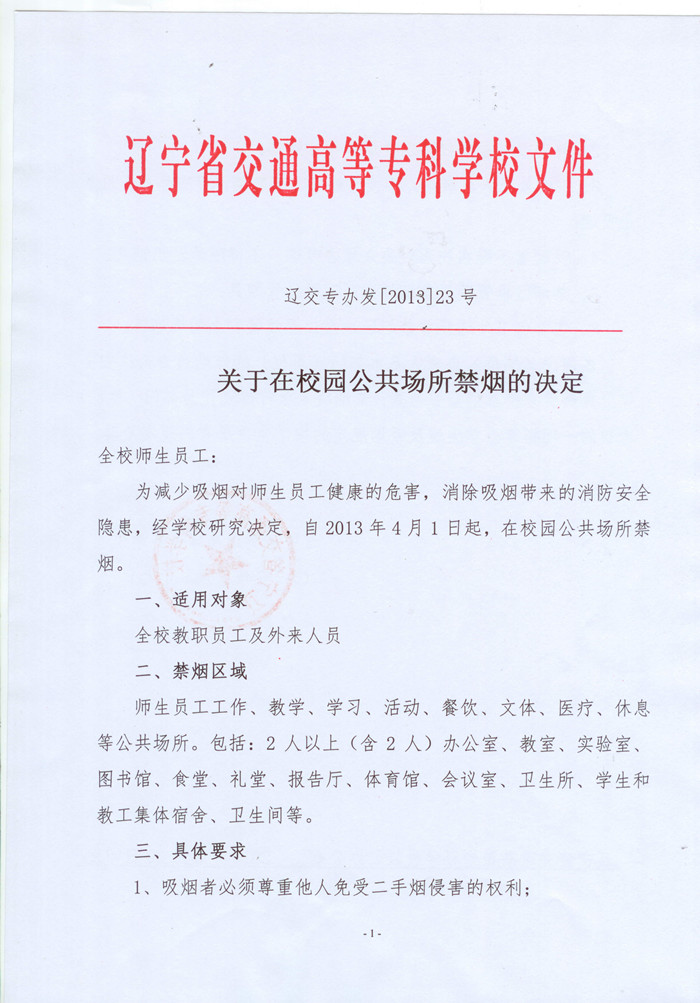 关于在校园公共场所禁烟的决定
