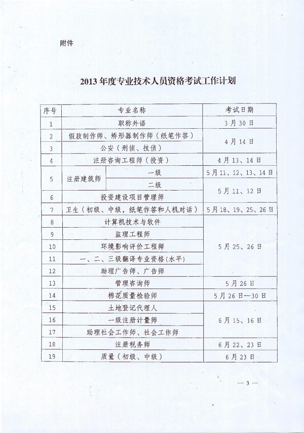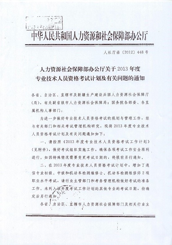 转发人力资源社会保障部办公厅关于2013年度专业技术人员资格考试计划及有关问题的通知