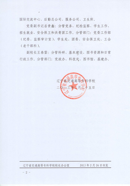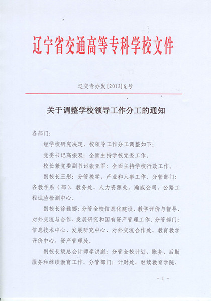 关于印发《关于调整学校领导工作分工的通知》的通知