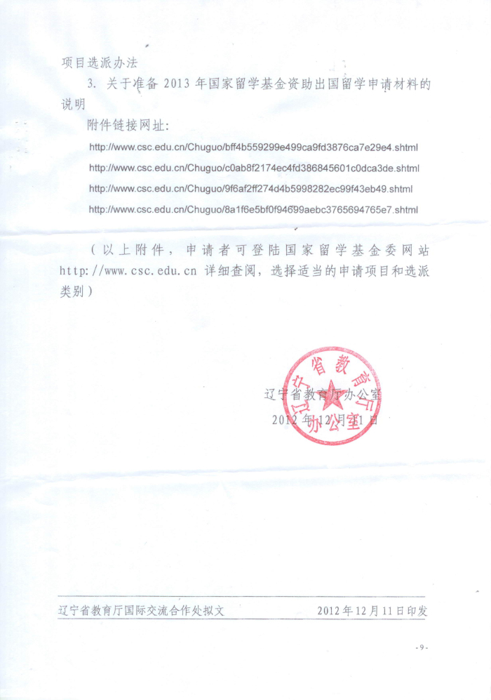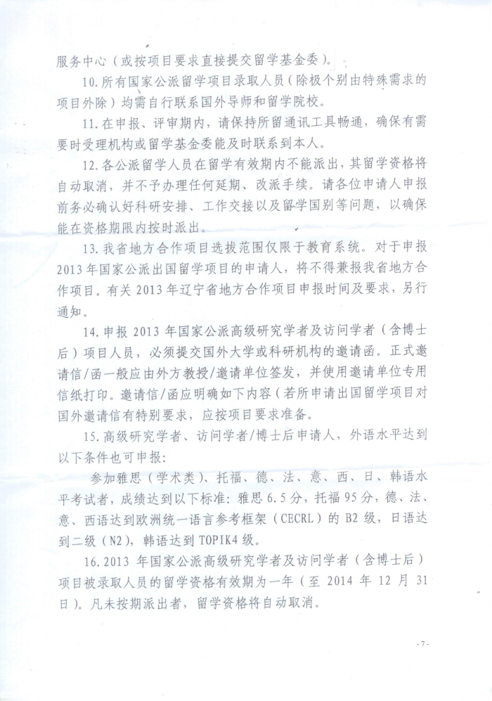 根据《辽宁省教育厅办公室关于组织开展2013年国家公派出国留学申报工作的通知》辽教办发【2012】324号文件要求,为进一步提高教师教学和科研能力,学校组织2013年国家公派出国留学项目——高级访问学者和访问学者的申报工作,请各系部认真按照《通知》中的要求做好申报工作。