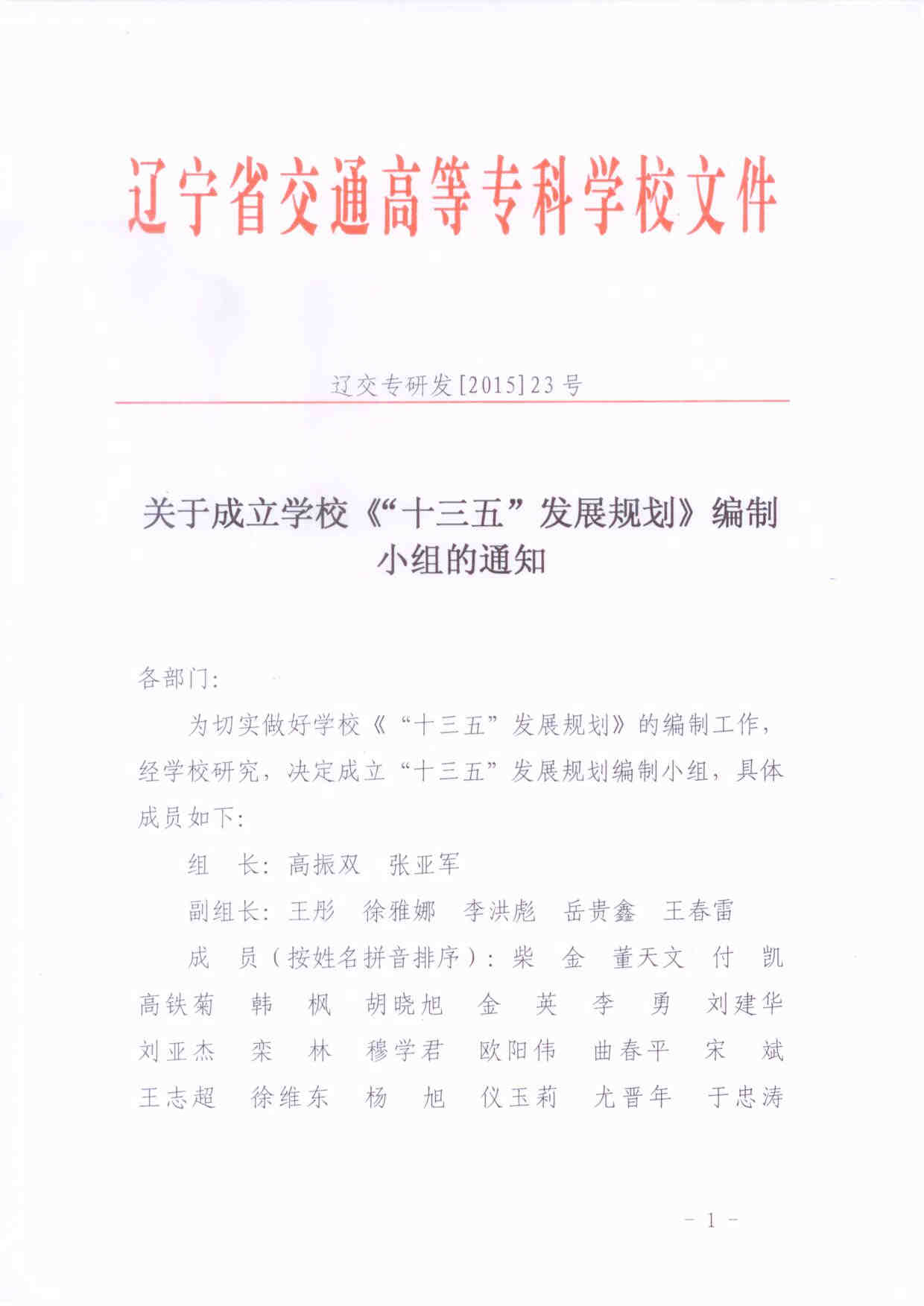 关于成立学校《“十三五”发展规划》编制小组的通知