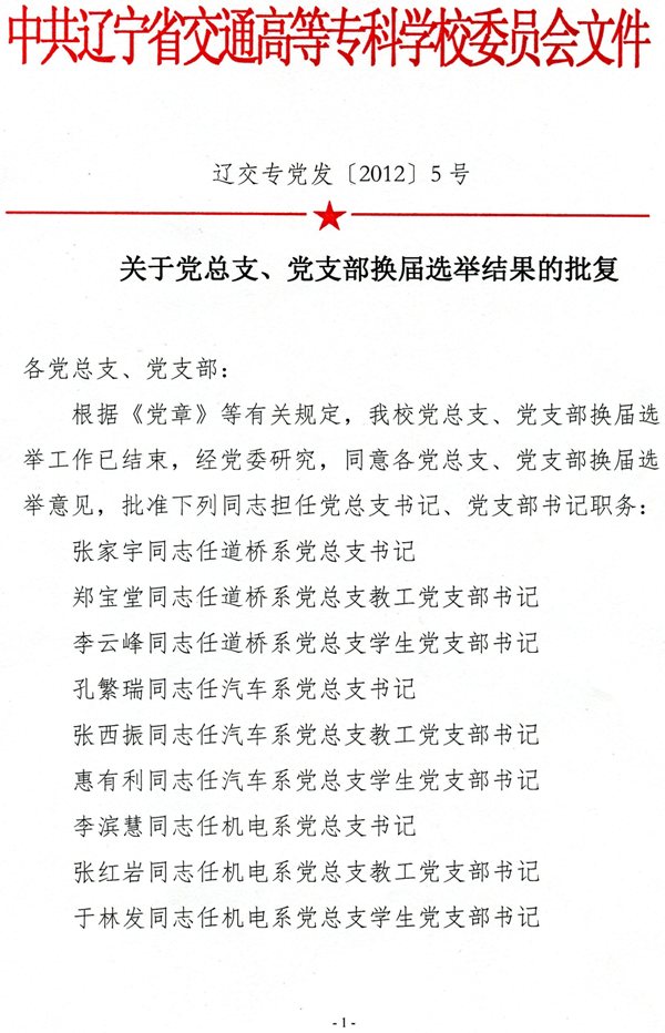 关于党总支、党支部换届选举结果的批复