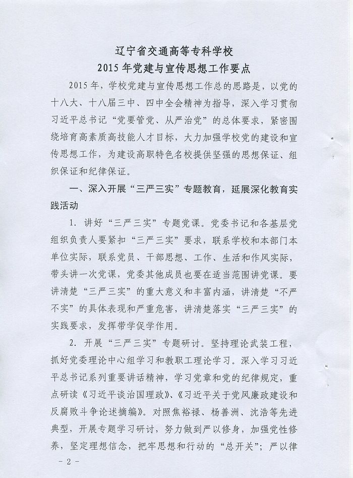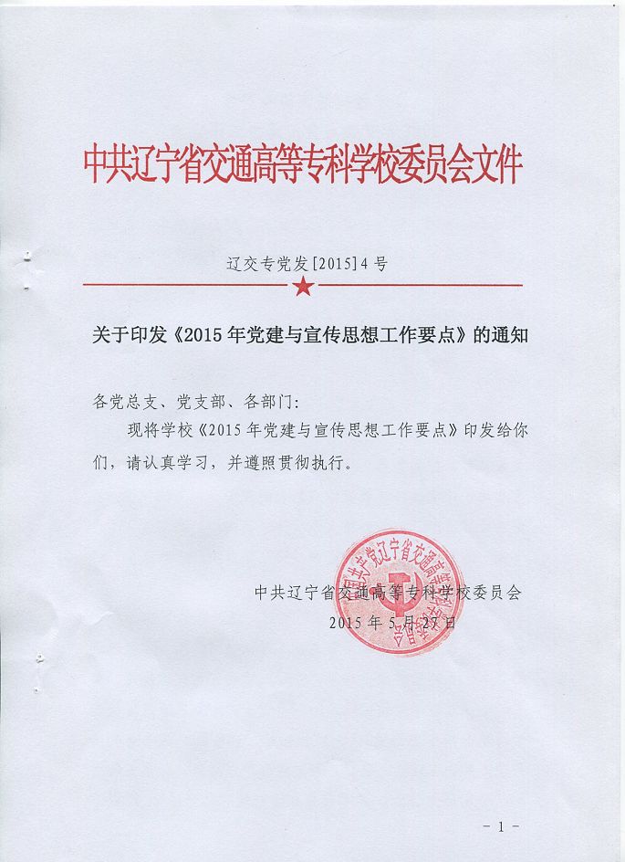 关于印发《2015年党建与宣传思想工作要点》的通知辽交专党发[2015]4号