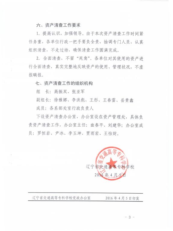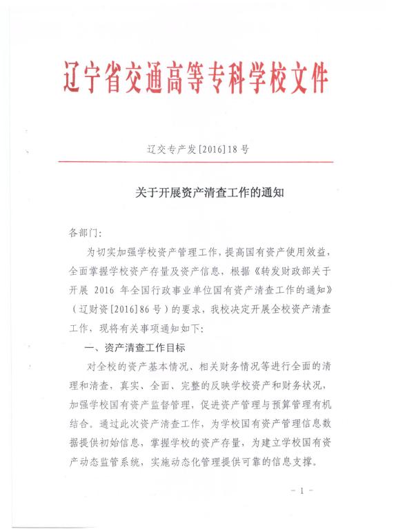 关于开展资产清查工作的通知