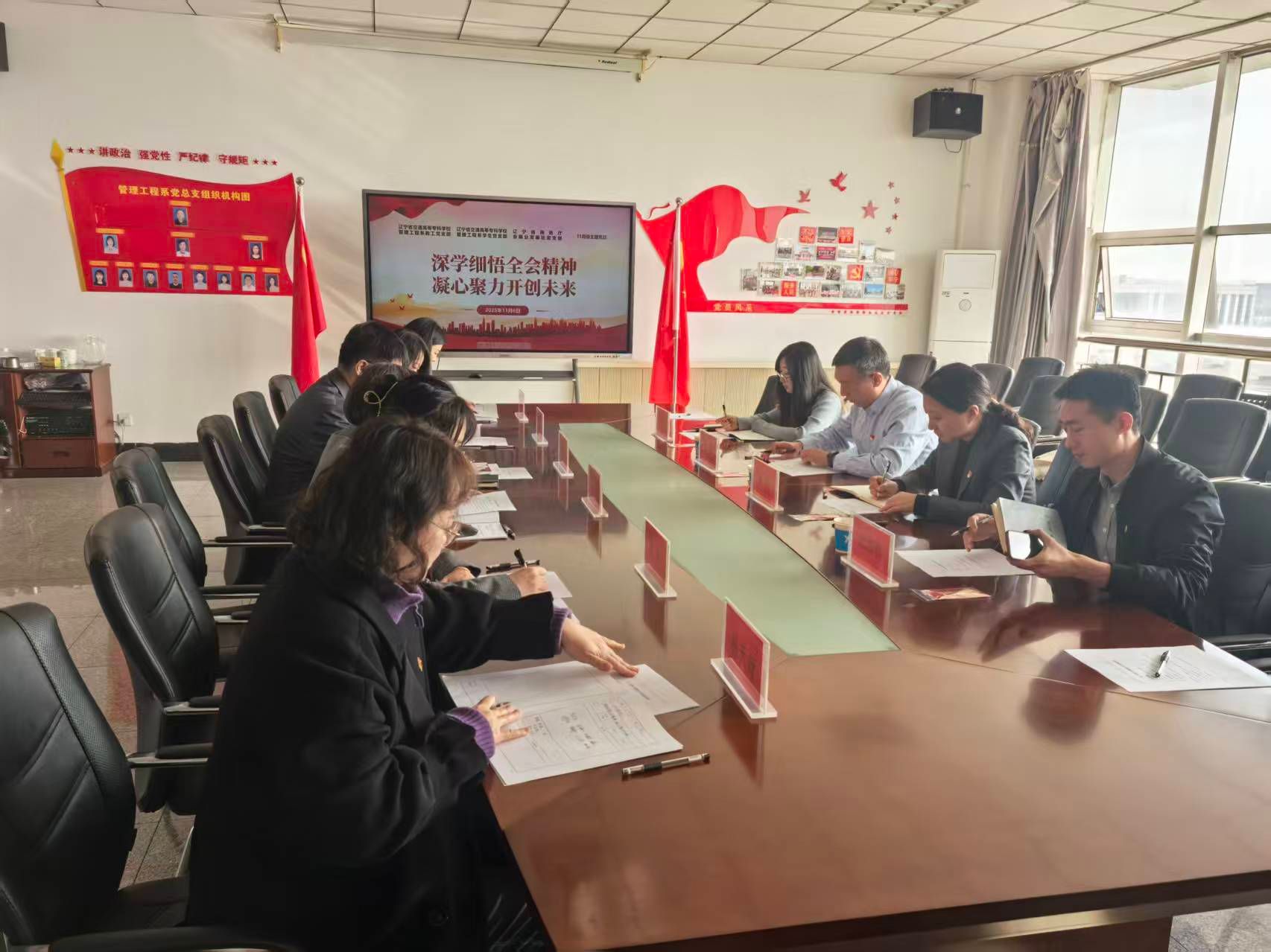 为推动党的二十届四中全会精神入脑入心、见行见效,11月6日,管理工程系教工党支部、学生党支部与辽宁省商务厅会展业发展处党支部在综合实训楼615会议室联合开展了以“深学细悟全会精神,凝心聚力开创未来”为主题的11月份主题党日活动。